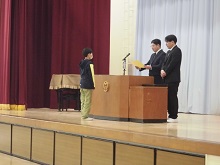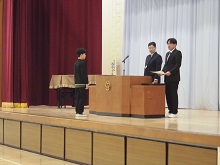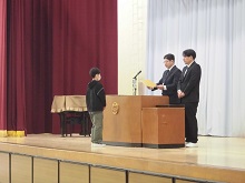 校長先生から、学校評価で嬉しかったこととして「学校が好き」と肯定的に回答した児童の割合が96%であることについてお話がありました。もっともっと素敵な学校になるように「慮る(おもんばかる)」という言葉を紹介してくれました。「よくよく考えて思いをめぐらす」「どうしたら相手がよりよい気持ちになるか想像する」などが大切であり、読書もたくさんして想像力を高めてほしいと児童に伝えました。