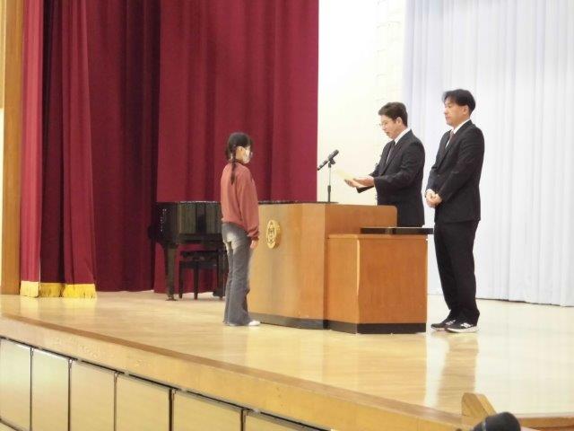人権作文や6つの誓い、絵画等で優秀な成績を収めた児童を表彰しました。
