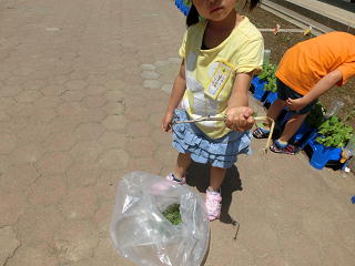 中庭の草むしりをしたよ!