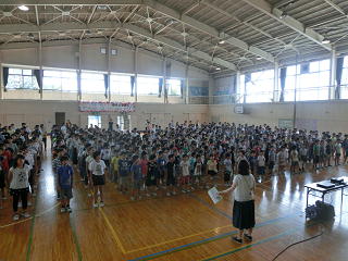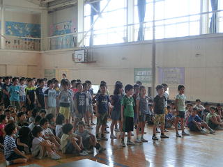 7月の全校暗唱は、4年生のリードで行いました。