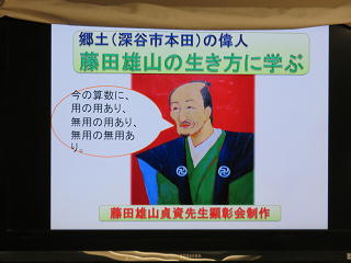 今日、6年生が道徳の授業で、郷土川本の偉人である藤田雄山について学習しました。