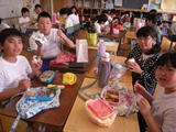 6年生の子どもたちは、5月に家庭科の授業でおかずを一品作りました。卵や野菜などの食材を上手に使ってオリジナルの一品にしていました。その調理実習の経験を生かして、今回のお弁当作りに励んだ子も多くいたようです。卵焼きや色とりどりの野菜炒めなど、とてもおいしそうでした。お弁当の日のために早起きしてお弁当の準備をしてくださったおうちの方、ご協力ありがとうございました。