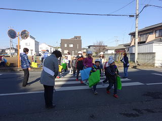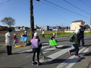 更生保護女性会の皆様と寄居警察署の方が、朝、立哨指導をしてくださっています。いつも子どもの見守りをありがとうございます。