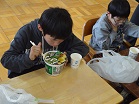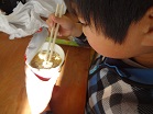 自分で選んだカップめんを「おいし~い!」と言いながら食べていました。