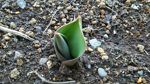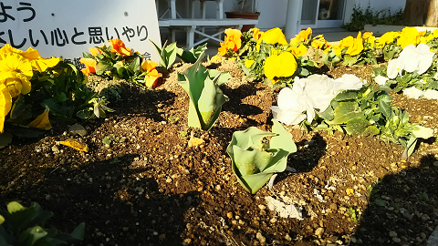 栽培委員会では、花壇の草取りを行いました。ふと、目をこらしてみると、冬前に植えておいたチューリップの芽が出ているではありませんか。