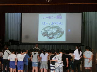 今朝は、ハーモニー集会(「エーデルワイス」)でした。1・2年生は生活科校外学習のためいませんでしたが、3~6年生児童が、きれいな歌声を聞かせてくれました。