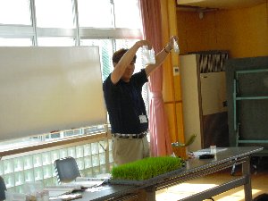 JAの職員の方に教えていただきながら、無事、種もみを植えることができました。