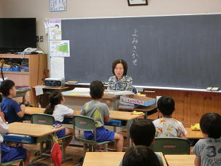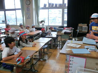 学校探検を行いました。学習したひらがなを学校の中で見つけていろいろな教室を探しました。隠れているひらがなをつなぎ合わせるとある言葉ができます。目をキラキラさせてがんばっていました。