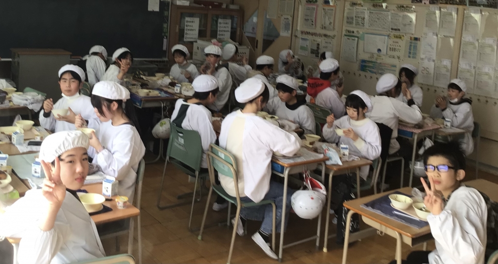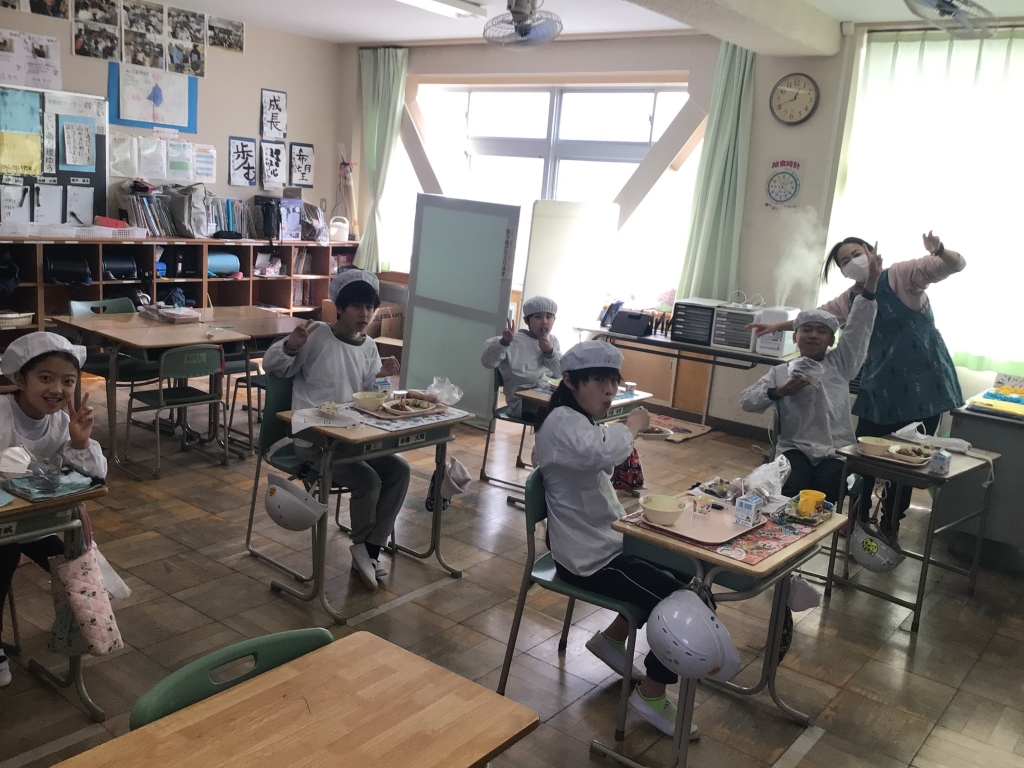 いつもより1品多かったので低学年は食べられるか心配でしたが、大人気メニューのものばかりなのでどのクラスもたくさん食べていました絵文字:笑顔