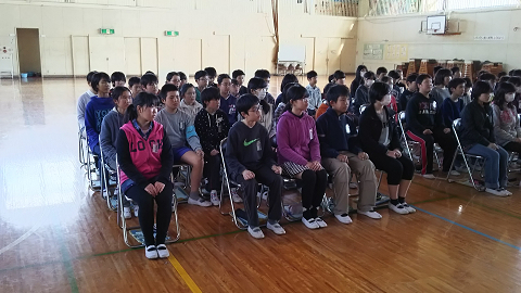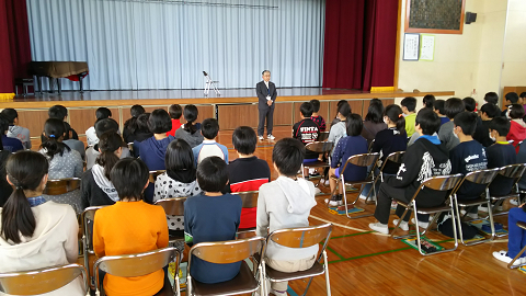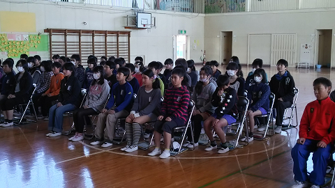 子どもたちは、腰骨を立ててしっかりとした態度で聞いていました。