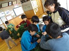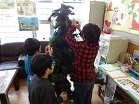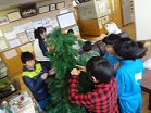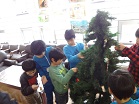 みんなで、大きなクリスマスツリーを組み立てたり、