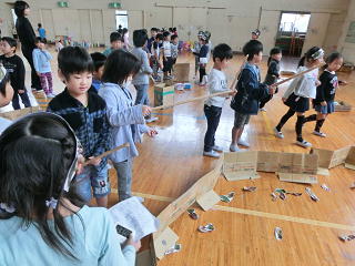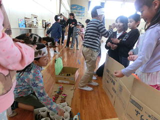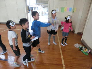 学校探検を行いました。学習したひらがなを学校の中で見つけていろいろな教室を探しました。隠れているひらがなをつなぎ合わせるとある言葉ができます。目をキラキラさせてがんばっていました。
