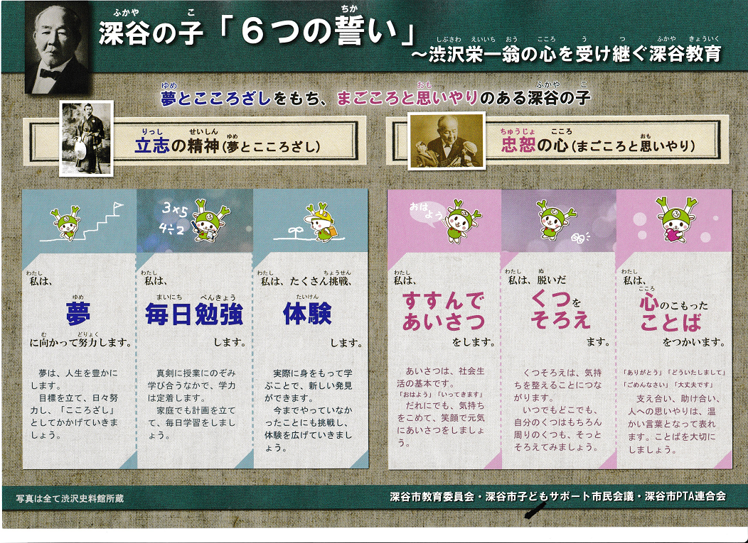 深谷市では、郷土の偉人である渋沢栄一翁の心を受け継ぐ教育を推進しています。