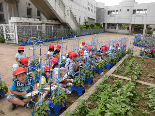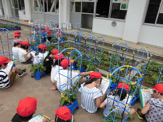 学校探検を行いました。学習したひらがなを学校の中で見つけていろいろな教室を探しました。隠れているひらがなをつなぎ合わせるとある言葉ができます。目をキラキラさせてがんばっていました。