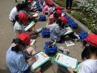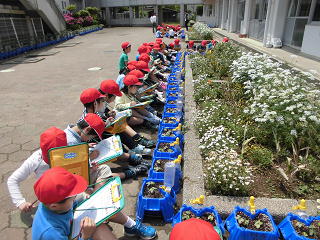 今日は、じっくり観察して、カードに絵と感想をかきました。