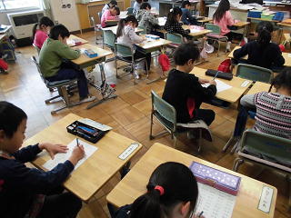 2組も3組も、全員が真剣に計算問題に取り組んでいました。