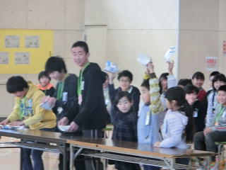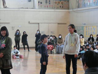 学校探検を行いました。学習したひらがなを学校の中で見つけていろいろな教室を探しました。隠れているひらがなをつなぎ合わせるとある言葉ができます。目をキラキラさせてがんばっていました。