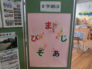 本校では、2学期に全ての児童が頑張ってほしいこととして、「ま・じ・あ・そ・び」を合い言葉に掲げています。