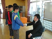 離任式の後、6年生は片桐校長先生と理科でお世話になった樋口先生と改めてお別れをしました。片桐校長先生は、最高学年になった6年生に熱いメッセージを送ってくださいました。また、樋口先生とは一人一人が握手をし、最後の別れを惜しみました。