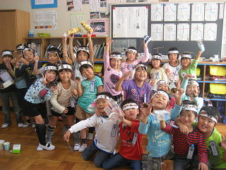 学校探検を行いました。学習したひらがなを学校の中で見つけていろいろな教室を探しました。隠れているひらがなをつなぎ合わせるとある言葉ができます。目をキラキラさせてがんばっていました。