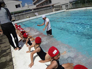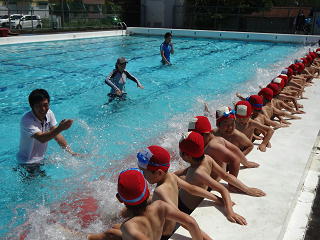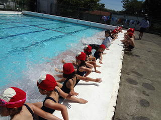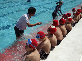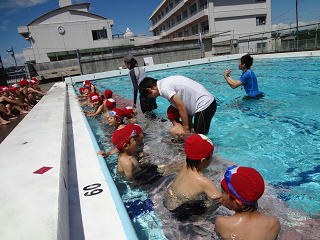 笛の合図で水慣れをし、