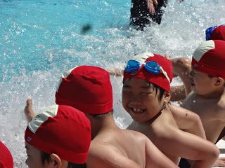 はじめてプールの中に入りました!
