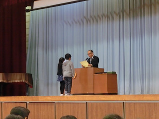 代表の児童が人権作文を読んだり、表彰されたりしました。