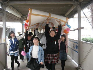 ということで・・・つくっちゃいました(*^_^*) 手作り感満載の「桃佳先輩へのメッセージ看板」