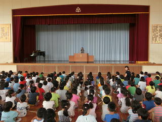 2年生の代表の児童の作文を一生懸命に聞きます。