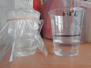 4年生は「雨水と地面」の学習で、水のしみこみ方を調べる実験を行いました。