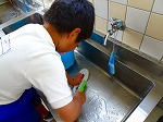 どのような順に洗ったらよいか思い出しながら、真っ白になるまで一生懸命に汚れを落としました。