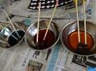福島先生の折り染め教室。