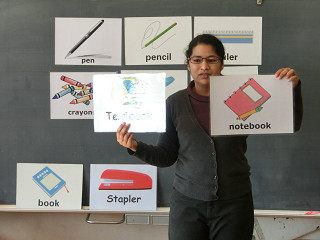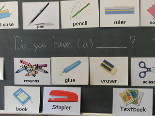 この日は筆記用具の単語を使った学習をしました。