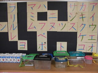 学校探検を行いました。学習したひらがなを学校の中で見つけていろいろな教室を探しました。隠れているひらがなをつなぎ合わせるとある言葉ができます。目をキラキラさせてがんばっていました。