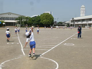 今日は、真夏のような日差しが照りつける天気になりましたが、新体力テストが行われました。1~2校時で1・3・4・6年生が、3校時で2年生が20mシャトルランを測定しました。