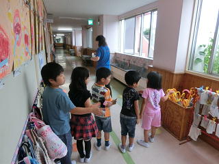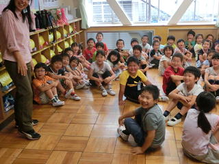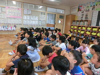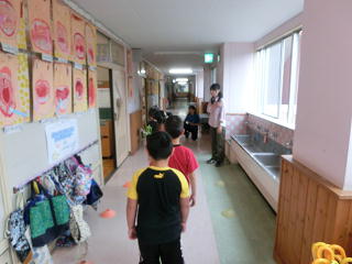 学校探検を行いました。学習したひらがなを学校の中で見つけていろいろな教室を探しました。隠れているひらがなをつなぎ合わせるとある言葉ができます。目をキラキラさせてがんばっていました。