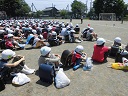 教室で避難訓練について話を聞いた後、校庭に避難しました。