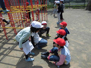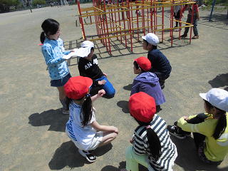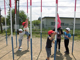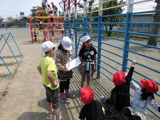 校庭で2年生に遊具の使い方を教えてもらいました。