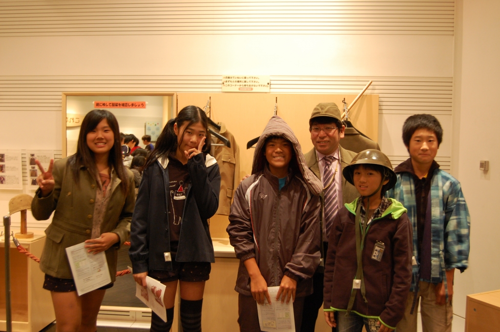 次に昭和館に行きました。昭和館では、学習した戦中、戦後の生活を表す資料をみたり、当時の服装を体験したりしました。