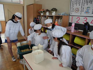 6年生に手伝ってもらい、配膳もしています。