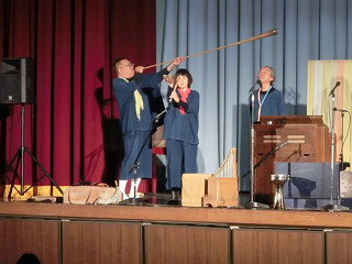 今日の芸術鑑賞会は、『ロバの音楽座』の方々が来てくれま