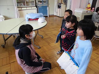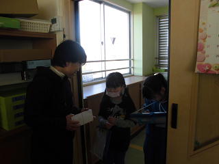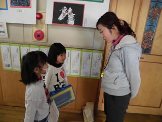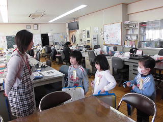 学校探検を行いました。学習したひらがなを学校の中で見つけていろいろな教室を探しました。隠れているひらがなをつなぎ合わせるとある言葉ができます。目をキラキラさせてがんばっていました。