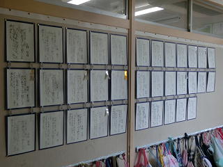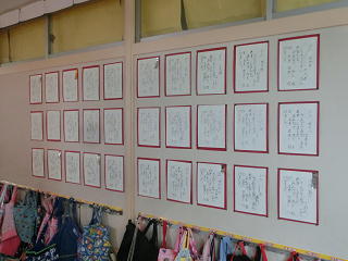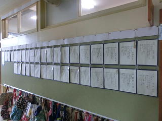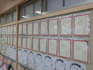 <各教室には、硬筆の作品が掲示されています>