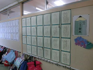 明日は、授業参観・懇談会でお世話になります。授業はもちろん、廊下など校舎内には、児童の作品等も掲示されています。ぜひ、ご覧ください。