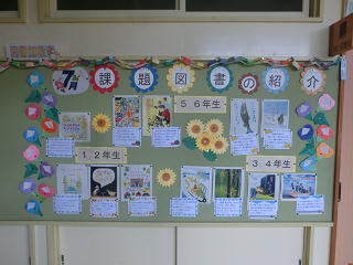 <課題図書の紹介 南校舎1階図書室前の廊下>
