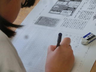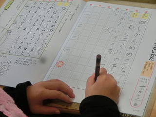 低学年は、ワークを使っての書写でした。ていねいに文字を書き写すことで、学年が上がっても、ていねいに、より速く書けるようになります。