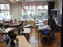 「今日のお話は、図書室に本があるので探して読んでみてね!」