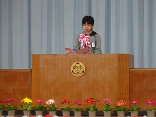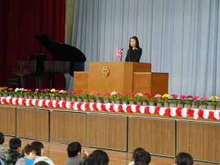 修了式では、5年生の代表児童が、1年を振り返って頑張ったことと新年度に頑張りたいことを堂々と発表してくれました。また、校長先生からは、1年間のまとめとして次のような話がありました。