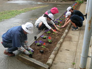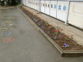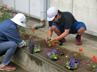 今日の委員会活動の時間、花ボランティアの皆様にご協力いただき、栽培委員会の児童が花壇への花植えをしました。「ここにサルビアを植えるのよ。」「ここには白い花がほしいわね。」などと、ボランティアの皆様からアドバイスをいただきながら、全部植えることができました。ボランティアの皆様、ありがとうございました。