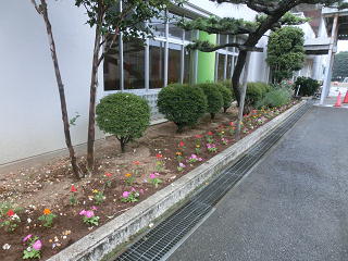 きれいに模様替えした学校の花壇をぜひ見に来てください。
